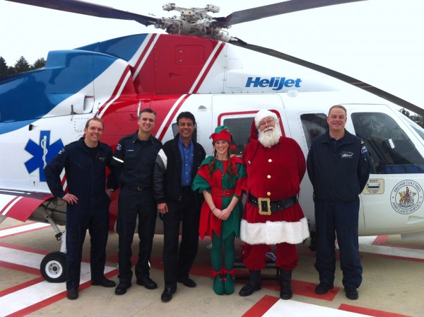 Some boys and girls in Victoria got an early taste of Christmas today when Helijet and the BC Ambulance Service flew Santa Claus to Victoria General Hospital to deliver presents and Christmas cheer to the kids on the hospital’s Pediatrics Ward.